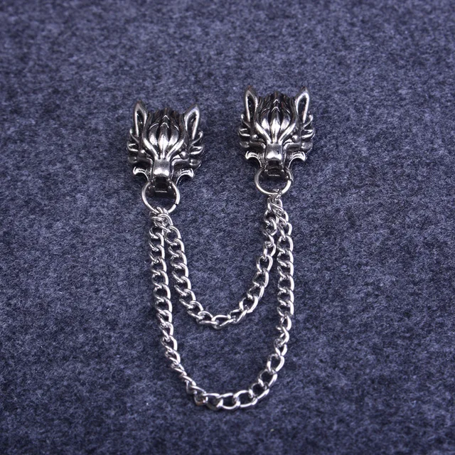 성격 브로치 레트로 드래곤 조디악 브로치 Highgrade 셔츠 옷깃 핀 체인 남성 패션 정장 칼라 액세서리 크리스마스 선물