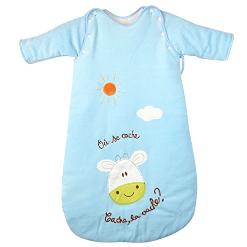 Title : Baby Toddler Animal Cow Thick Padded Fleece Sleeping Bag Sack with Removable Long Sleeve Blue 6-24M
