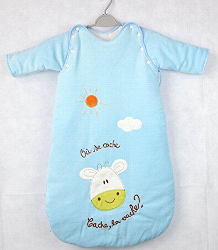 Feature : Winter baby sleeping bag with REMOVABLE long sleeves made with soft cotton fleece chambray featuring Cow embroidery. Can be worn in two ways Vest or Long Sleeve sleeping bag / Generous body fit to let body move and kick, promoting healthy body development / Maximum versatility: Both shoulder snaps and two sides zipper for easy dressing and diaper changes; Opens completely flat for easy dressing. / Soft Cotton Fleece creates a micro-climate around baby's body