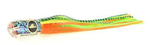 Studio : Santos Tournament Grade Tackle Publisher : Santos Tournament Grade Tackle Binding : Sports Product Description Santos Magna Series lures feature twin jetted scooped faces. They dart, splash, and dive as they closely mimic the actions of pelagic baitfish, mackerels, and small tunas. The movements and aggressive smoke trail of the medium tackle Virgin Islands Magna excites, and induces violent predatory strikes from all bluewater game fish particularly blue marlin. The Magna's jetted face and (TM) LCM weighting promote faster trolling and also extends the lure's condition range. The Virgin Islands Magna is best suited to the long and short corners. Santos offshore big game trolling lures are hand cast from premium urethane which does not require sanding after demolding, and therefore ensures that every lure is identical to the precision engineered prototype. Unlike most trolling lures which are made of polyester resins, urethane lures are optically clear, ultra hard, UV stable, and can be produced with perfect design proportions. Additionally, each lure is heat and pressure cured for the ultimate in durability. We use only the finest AAA grade abalone shell veneers, soft PVC anti-chafe leader tubes, and custom made, hand painted Santos Holographic eyes for our lures. Every Santos lure tailstock is precision CAD engineered to perfectly fit our double hand tied skirts, and to make an ideal hydrodynamic transition from the head to skirt. Tied skirts also allow for easy replacement compared to glued skirts. Each Santos trolling lure features our proprietary (TM) LCM (Low Center of Mass) insert technology that insures that the lure stays upright, and is able to achieve significantly higher trolling speeds. With an upright lure, hook set position and orientation within the skirts are further maintained by our Santos RigLock(TM) system which is a standard feature of all of our big game lures. Santos bluewater trolling lures features supple, vibrant, and durable skirts made in the USA by Ocean Lure Concepts. There are no finer skirts available. 0