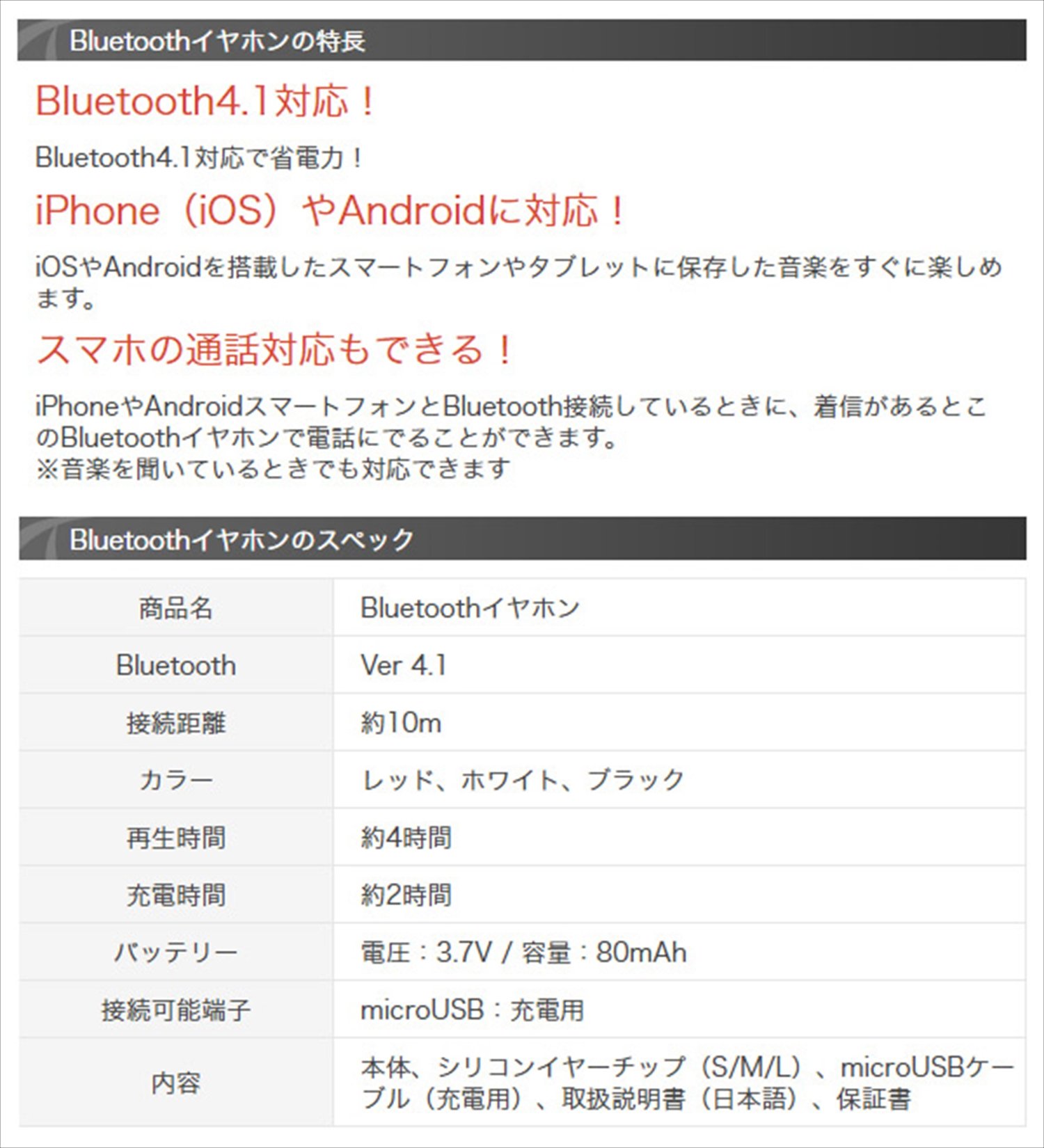 ● iPhone (iOS) and Android compatible Bluetooth earphone