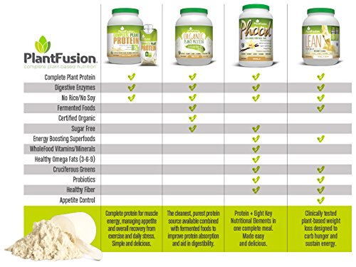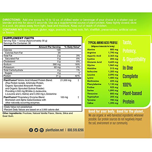 PlantFusion Complete Protein Powder, Vanilla Bean, No Soy or Rice, 30 Servings, 21g Protein, 2lb Tub