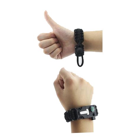 The green and black adjustable survival bracelet paracord tool with fire starter, compass, whistle and knife for women and men, youths.