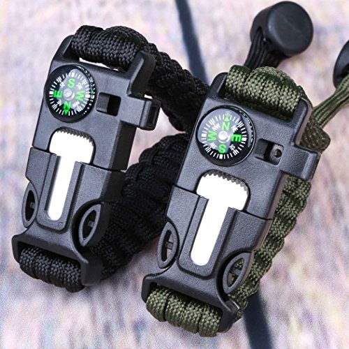 2MULTI-FUNCTIONAL TOOL - Flint fire starter, high-quality compass, loud whistle, an emergency knife and 12 feet of military-grade 550 paracord.(perfect match)