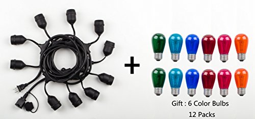 ONO-Tech 17.3Ft Commercial Grade Outdoor\Indoor String Lights, 10 Sockets+12Pack Colorful Bulbs