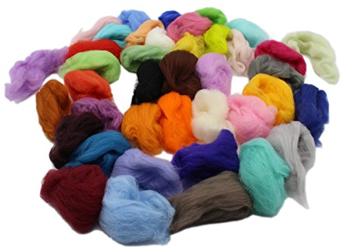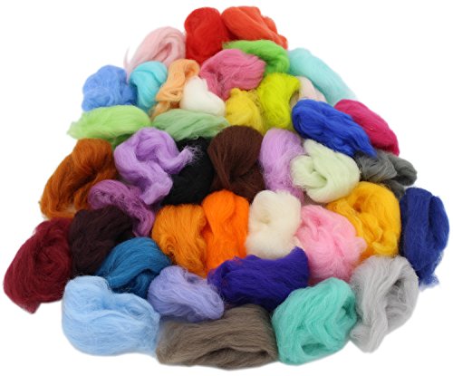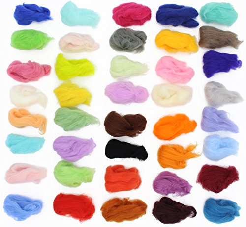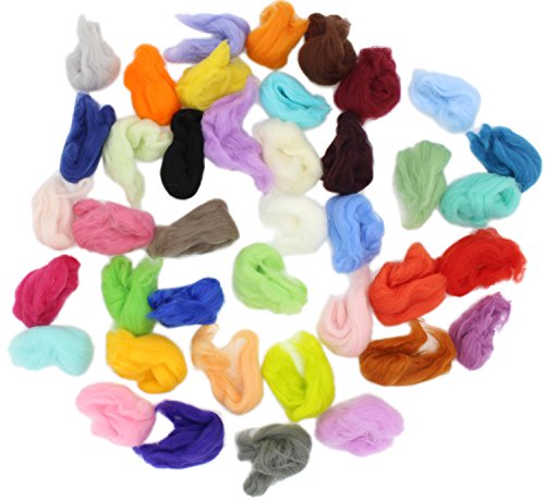 Fiber Wool Yarn Roving for Needle Felting Hand Spinning DIY Craft Materials Set of 40 Colors (40 Colors)