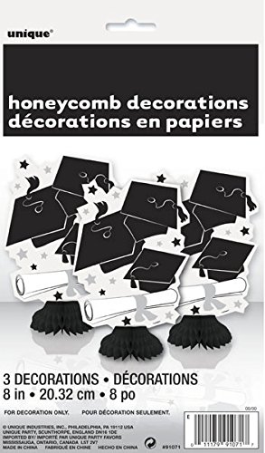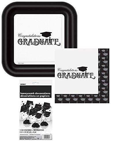 -. Feature : Perfect For Your Graduation Party! / 8 - 8 3/4 inch Square Dinner Plates - "Congratulations Graduate" / 20 - 13 x 13 inch 2 Ply Luncheon Napkins - "Congratulations Graduate" / 3 - Honeycomb Decorations Mini Tabletop Centerpieces - Graduation Caps and a Diploma / Coordinate With Other Graduation Party Supplies And Decorations From Unique