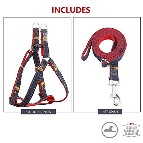 URPOWER Dog Leash Harness Adjustable & Durable Leash Set & Heavy Duty Denim Dog Leash Collar for Small, Medium and Large Dog, Perfect for Daily Training Walking Running
