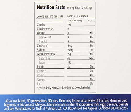A convenient, delicious way to get two servings of real fruit every day! Made with literally two ingredients : Apples + Blueberries. That's it. Plus, these fruit bars are Paleo certified by the Paleo Foundation.Feature