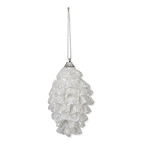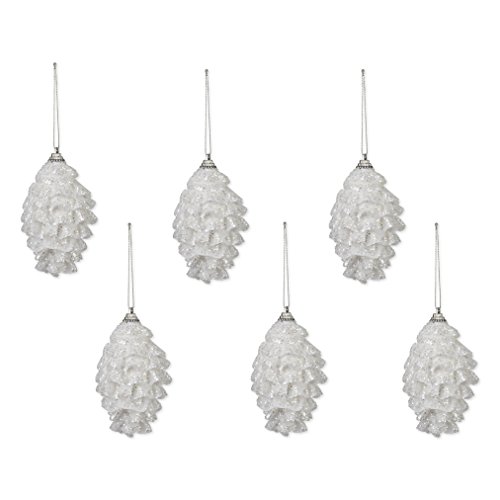 Winter White Glitter Pincones 4 Inch Resin Christmas Ornaments - Box of 6