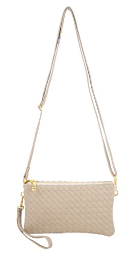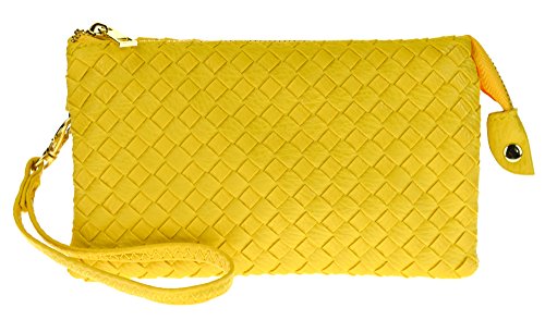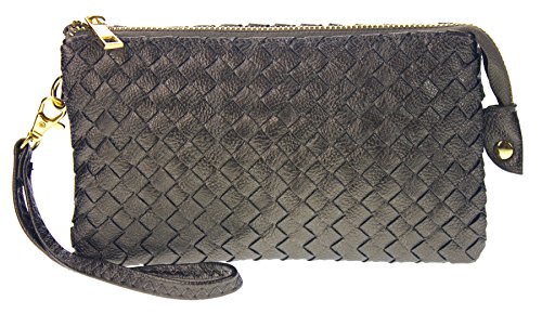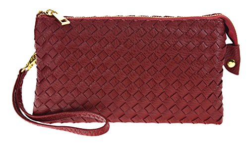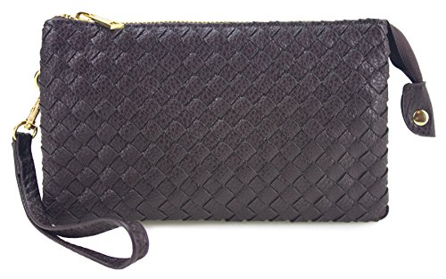 Proya Collection Classic Soft Woven Leather Wristlet Clutch