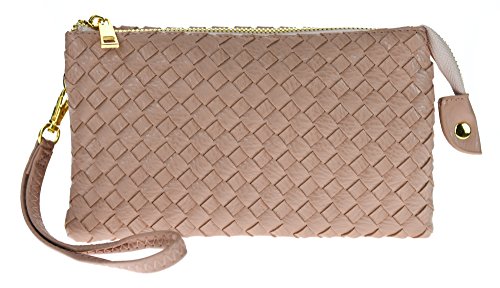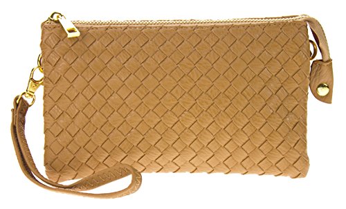 Proya Collection Classic Soft Woven Leather Wristlet Clutch (Tan)