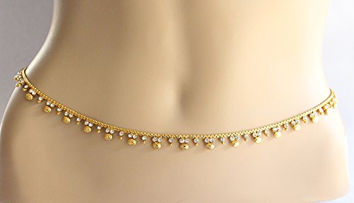 Product Description~~~ This Listing is for ~~~ * Beautifully designed gold belly chain embedded with crystals. * Would look sexy with sari belly dance costumes. * Adjustable from 26 to 42 inches.0
