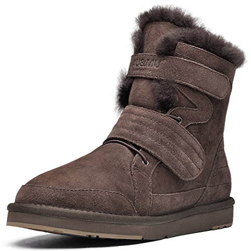 -. Binding : Apparel -. Brand : AU&MU -. Department : womens -. Feature : Why Choose AUMU? / Choose AUMU-The style you choose will be the only one in the world.Velcro closure for easy on/off / Choose AUMU-Merino wool is very breathable and keeps your feet perfectly,you can even wear our boots in summer. / Choose AUMU-You will be the unique one in the crowd.Dyed Shearling Lamb,Fur Origin: Australia.Lightweight and durable molded EVA rubber sole / Choose AUMU-We will choose a customer as a model in the review show, and take pictures in Australia , your pictures will show on our Amazon page.Put on these boots and show your charm. -. Model : N352 -. PackageQuantity : 1 -. ProductGroup : Shoes -. ProductTypeName : SHOES -. Title : AU&MU AUMU Women's Suede Velcro Bukcle Sheepskin Winter Snow Boots
