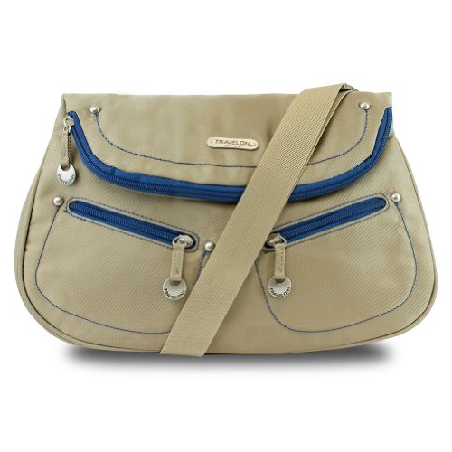 The ideal bag for use whenever and wherever is the Travelon Front Flap Shoulder Bag. Weighing only 9 oz. and made from durable nylon twill, this bag is ideal for use everyday or while traveling. It features two small zippered pockets on the front that are perfect for storing chapstick or other small essentials. Underneath the flap is then a hidden slip pocket that's large enough to hold your smartphone so you'll always have quick and easy access. The flap upzips to reveal a spacious main compartment for storage of all your must-haves. The rear then includes one more zippered pocket that features a mesh interior zippered pocket, slip pockets, plus 4 card slots for your credit cards and ID.