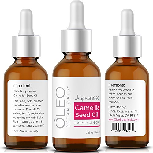 Óleo Botanicals™ Japanese Camellia Seed Oil also known as Tsubaki Oil. This precious oil is of premium quality, Authentic, 100% Pure, Cold-Pressed & Unrefined, from the seeds of the wild Camellia japonica flower. Packaged in dark glass bottles to prevent light damage and protect the integrity of the oil. Imported from Japan. Bottled in the USA in small batches, to ensure optimum quality and freshness.