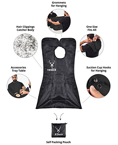 Men's Beard Trimming Bib Apron Set, XDeer 5 In 1 Hair Clippings Catcher & Grooming Cape Apron with Beard Shaping Tool Black