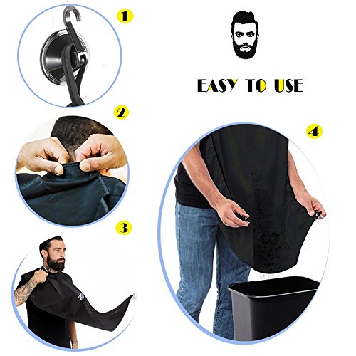 - 【EASY TO USE】 Attach the neck straps and secure to mirror. Begin with your normal grooming regimen. If you need to stop and step away from grooming you can attach the neck straps to the hooks on the suction cups. Once complete lower over the trash can and gently shake. One Size Fits All