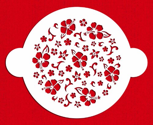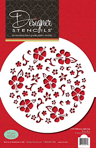 Designer Stencils C134 Hibiscus Round Cake Stencil Top, Beige/semi-transparent