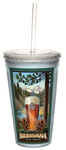 Tree-Free Greetings cc33383 Hoppy Bend Oregon Beer Lovers Beervana by Paul B. Leighton Artful Traveler Double-Walled Cool Cup with Straw, 16-Ounce