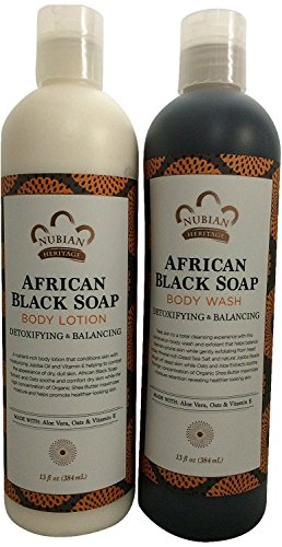 African Black Soap Lotion & Body Wash Set by Nubian Heritage. 13oz. Each