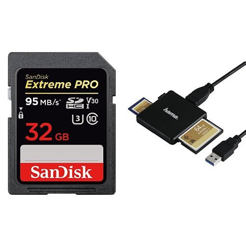 SanDisk Extreme PRO 32 GB SDHC Speicherkarte bis zu 95 MB/Sek und Hama USB 3.0 Multi-Kartenleser (Card-Reader)