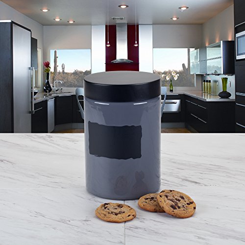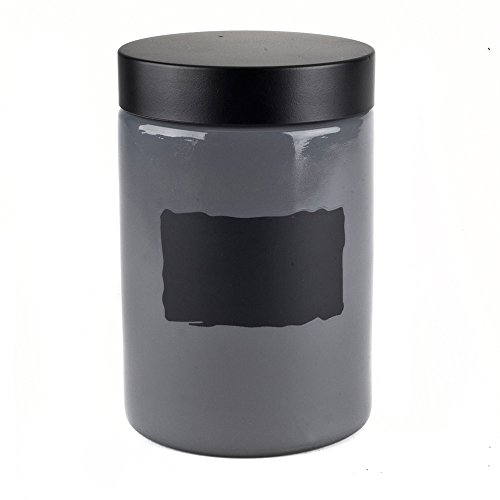 Housewares International 33695 Blue Harbor Glass Jar with Black Lid, 43.9 oz, Gray