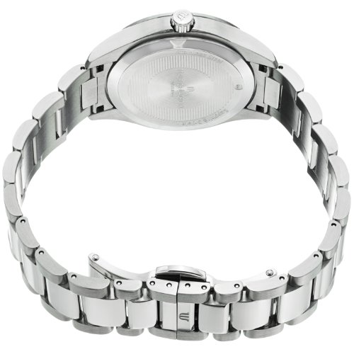 Stainless steel case with a stainless steel bracelet. Fixed diamond bezel. Black dial with luminous hands and index and Arabic hour markers. Minute markers around the outer rim. Dial Type: Analog. Date display at the 3 o'clock position. Quartz movement. Scratch resistant sapphire crystal. Case diameter: 32 mm. Round case shape. Deployment clasp. Water resistant at 100 meters / 330 feet. Functions: date, hour, minute, second. Dress watch style. Watch label: Swiss Made. Maurice Lacroix Miros Black Dial Steel Diamond Ladies Watch MI1014-SD502-330.Feature