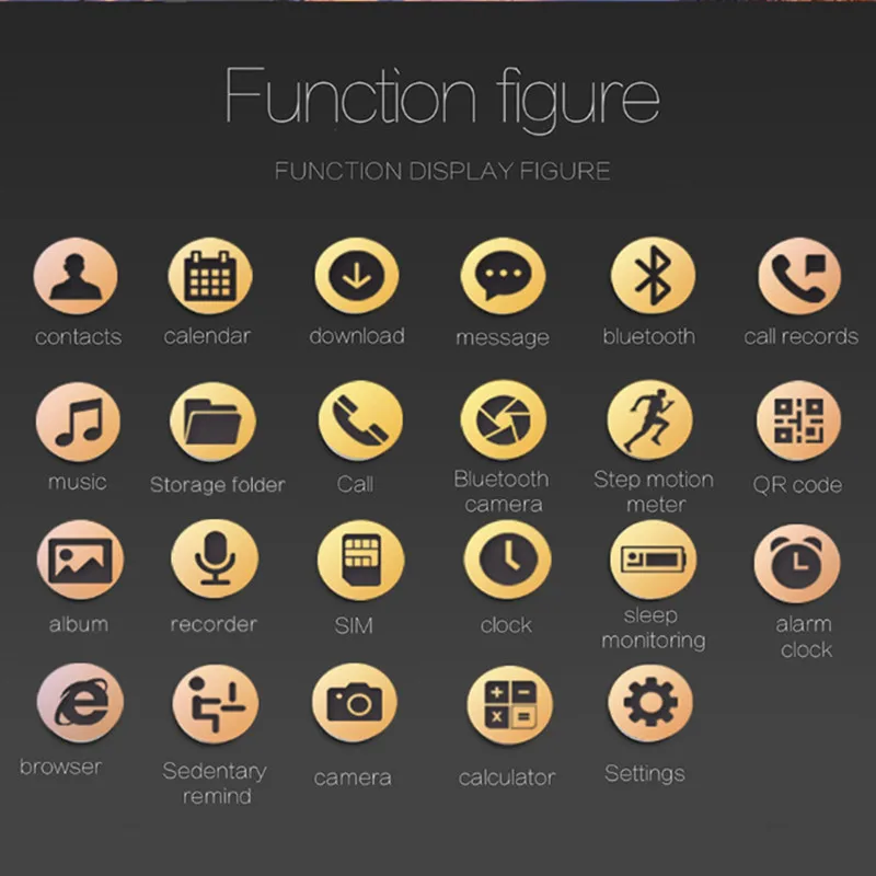Function:Permanent Calendar,Answer Call,Week,Dial Call,Alarm Clock,Month,Push Message,Passometer,Message Reminder,Call Reminder
