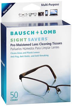 Product DescriptionBausch Lomb Sight Savers, Pre-Moistened Lens Cleaning Tissues - 50 ea Cleans glass plastic lenses.0