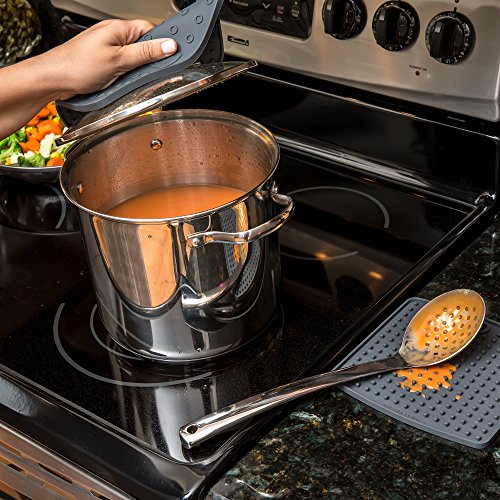 - SUPREMELY VERSATILES: Our soft & flexible yet strong silicone trivet is the ultimate multi-tasker! Use it as a mat to protect your kitchen surfaces from scalding dishware—or as a pot holder to grip hot pans safely. It also functions as a: large coaster, jar opener and spoon rest!