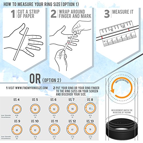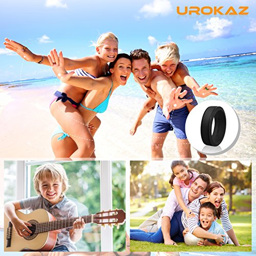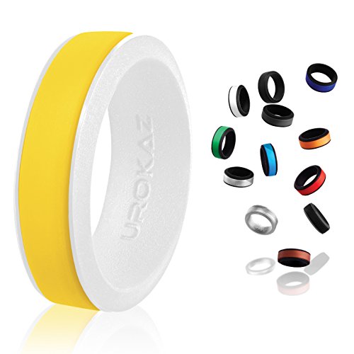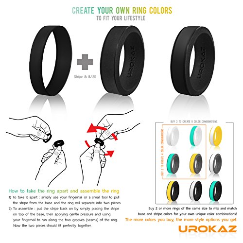-. Feature : Unique design (two pieces in one ring): UROKAZ's unique design comes in two separate pieces, a ring base and a ring stripe. This design allows you to create your own ring colors if you buy 2 or more of the same sized rings (different base and stripe colors). You can mix and match the color of the base and stripe depending on the day. The more colors you buy, the more styles you get. Please see picture 2 for more information. / How it works: Buying at least 2 rings of the same size but with different base and stripe colors will allow you to create 4 different color combinations from the 2 rings you purchase. Buy 3 rings to get 9 color combinations, buy 4 rings to get 16 color combinations and so on! Remember that the rings have to be the same size for mixing and matching. / Comfortable to wear: Hypoallergenic ring made with BPA free and FDA approved medical grade silicone. Our best quality silicone makes wearing the UROKAZ ring like wearing air. / Fits your lifestyle: Stay active and look great while enjoying your vacations, outdoor activities, and all parts of your daily life. UROKAZ is right for you, whether you are single or married. / Perfect gift: The UROKAZ ring is a thoughtful gift for your loved ones for any occasion, including Christmas, Father's day, Mother's day, Valentine's day, Wedding Shower, Engagement Party, Bachelor party, Prom, and many more.