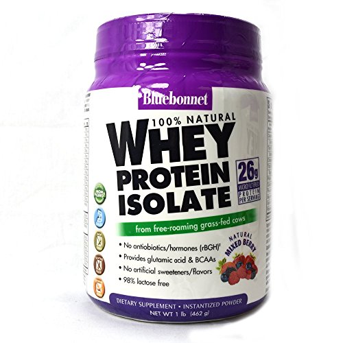 ReleaseDate : 2015-11-16 Studio : BlueBonnet Publisher : BlueBonnet Binding : Health and Beauty Product Description Bluebonnet's 100% Natural Whey Protein Isolate is sourced from grass-fed cows that are not treated with antibiotics or recombinant bovine growth hormone (right), also known as bovine somatotropin (BST). Additionally, whey protein has the highest biological value (BV) of any protein on the market, which refers to a protein that has all of the essential amino acids in adequate quantities to sustain growth and development. Whey is also a rich and natural source of branched chain amino acids (BCAAs) and glutamic acid. 0