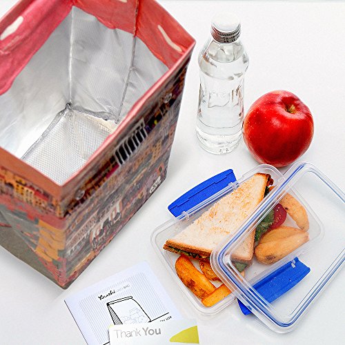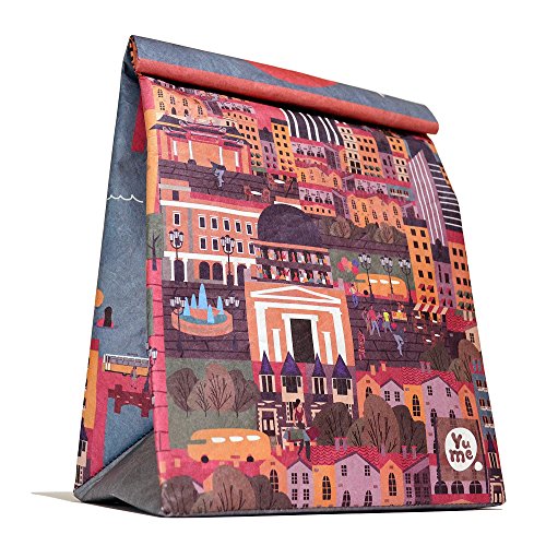Thermal Lunch Bag by Yume - Large Insulated Paper Lunch Sack Box "Metro”, Foldable & Reusable Bags with Designer Prints & Magnetic Handle for Adults & Children Who Like Healthy Packed Lunches.