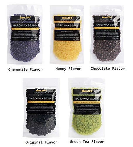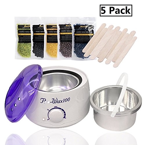 Bluezoo Waxing Kit Electric Wax Warmer with Hard Wax Beans ( 5 Pack, 5 Flavor ) and 10 Wax Applicator Sticks