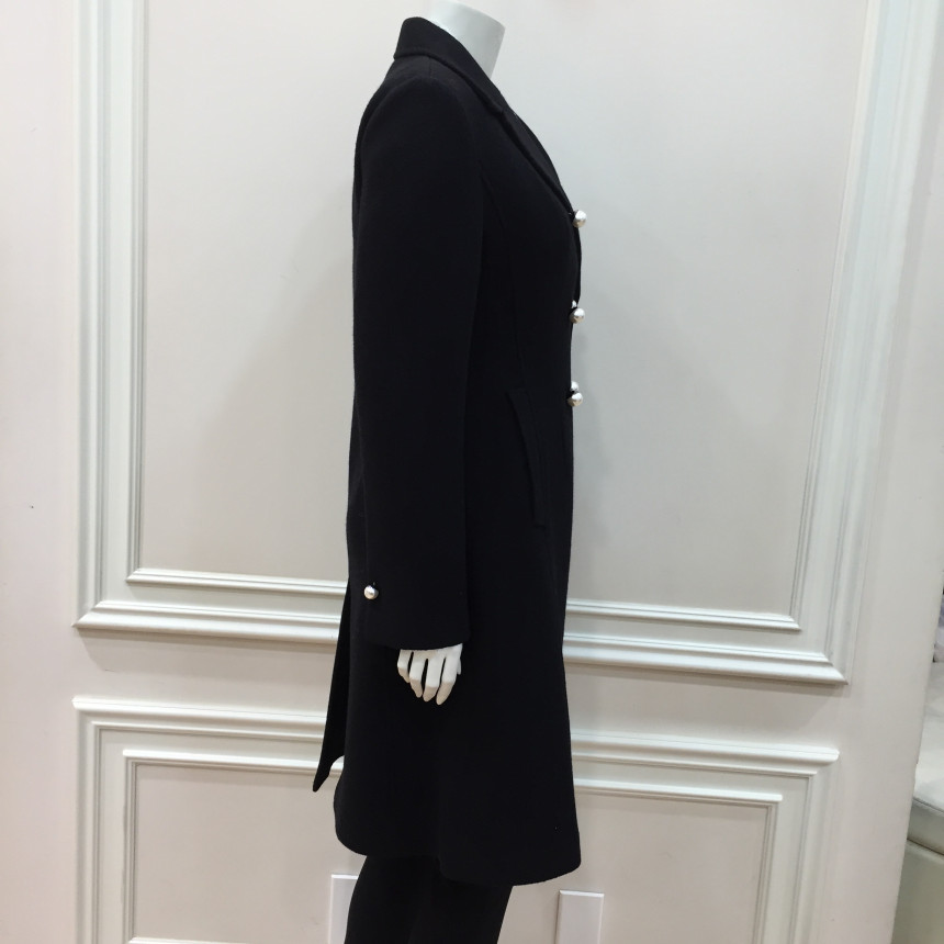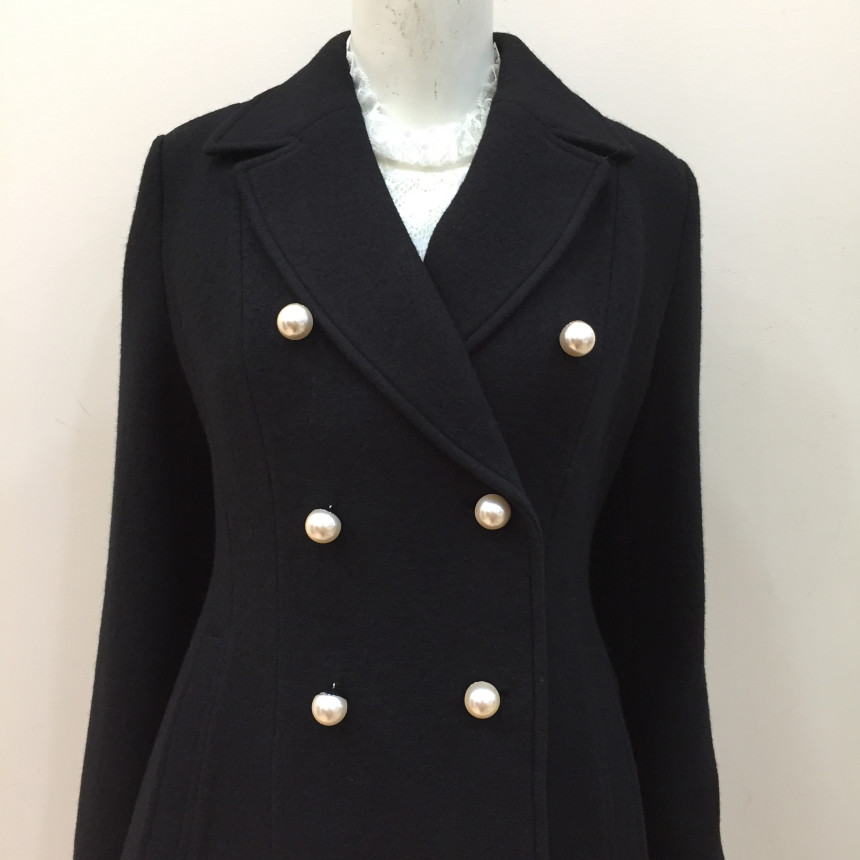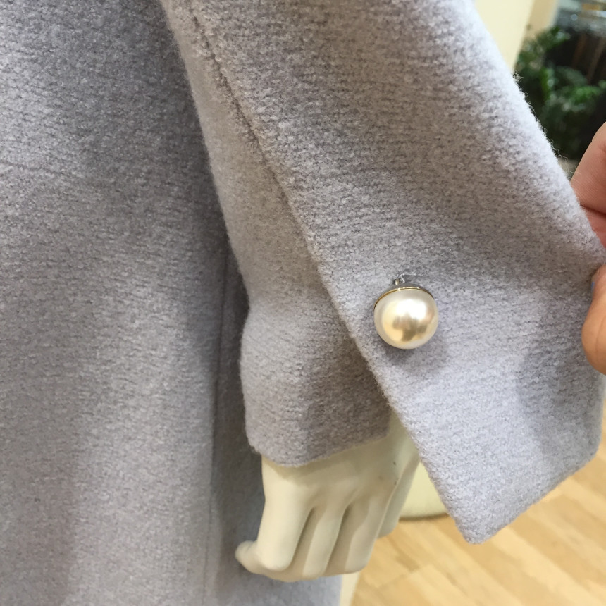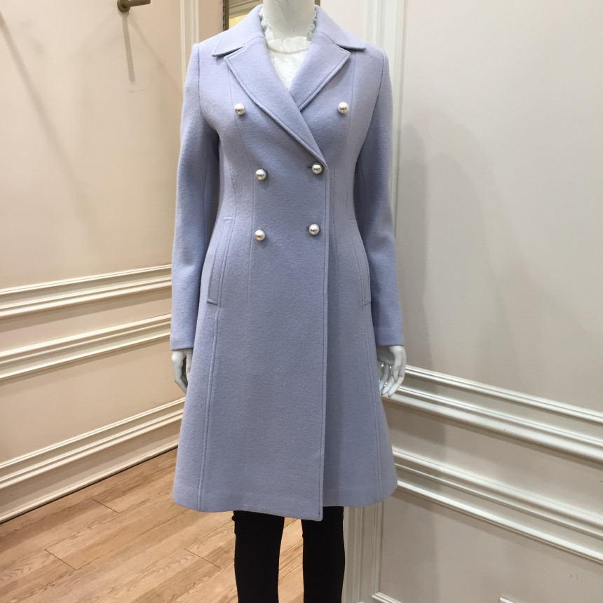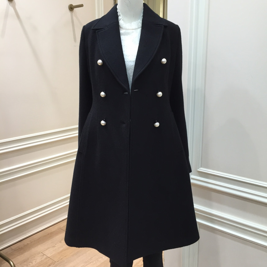 슬림하게 핏되는 A라인 코트로 진주단추를 달아 여성스럽습니다.수입소재를 사용해서 고급스럽습니다.