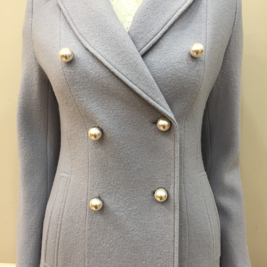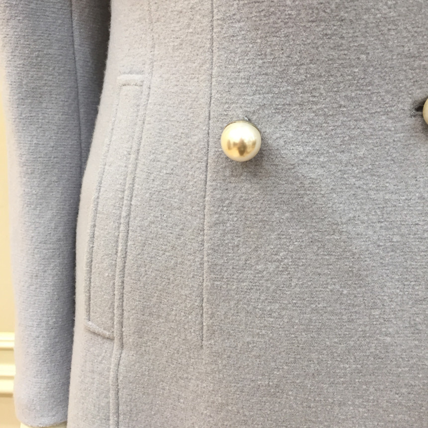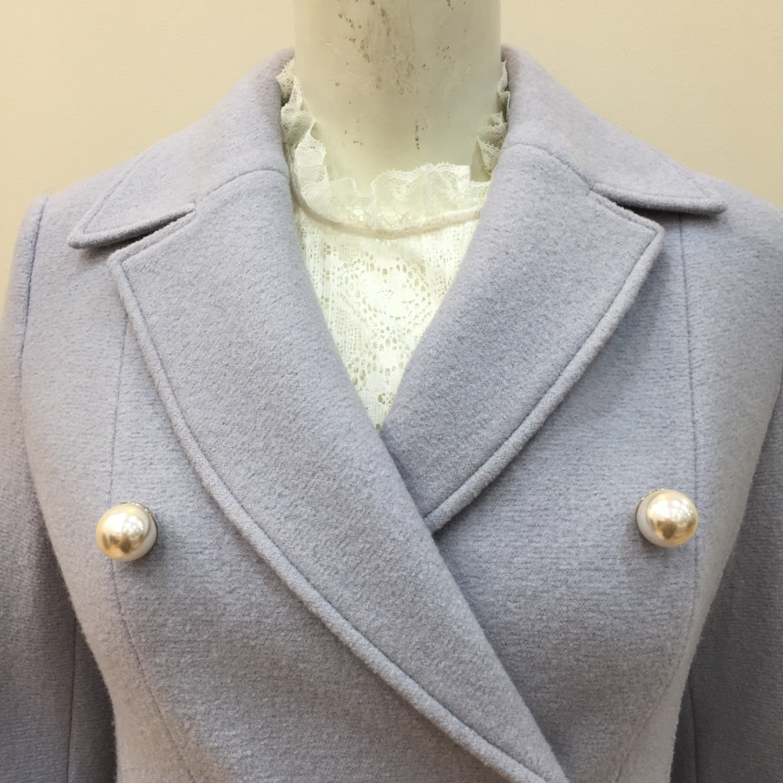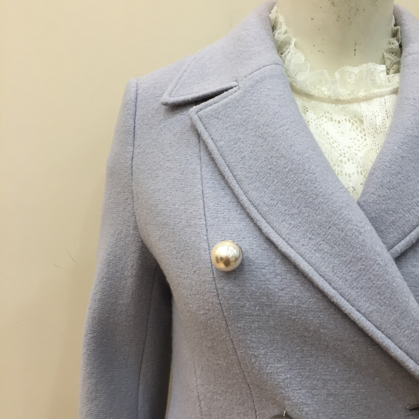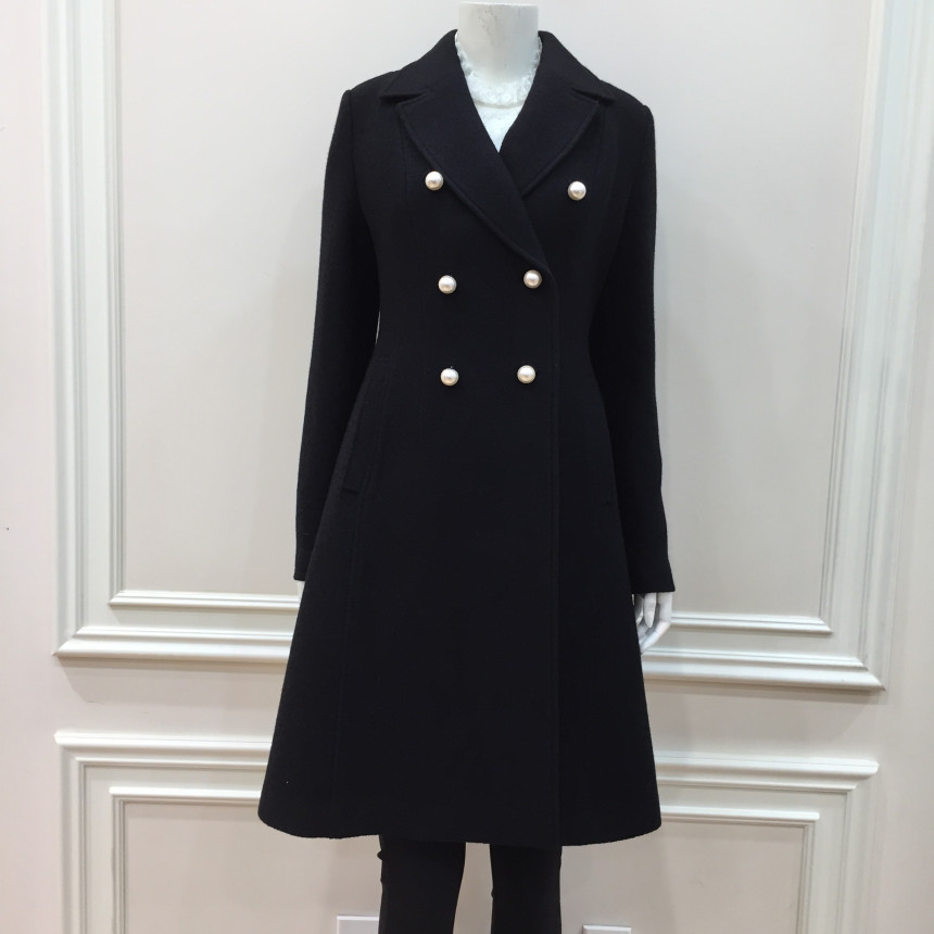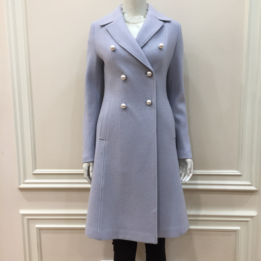 슬림하게 핏되는 A라인 코트로 진주단추를 달아 여성스럽습니다.수입소재를 사용해서 고급스럽습니다.