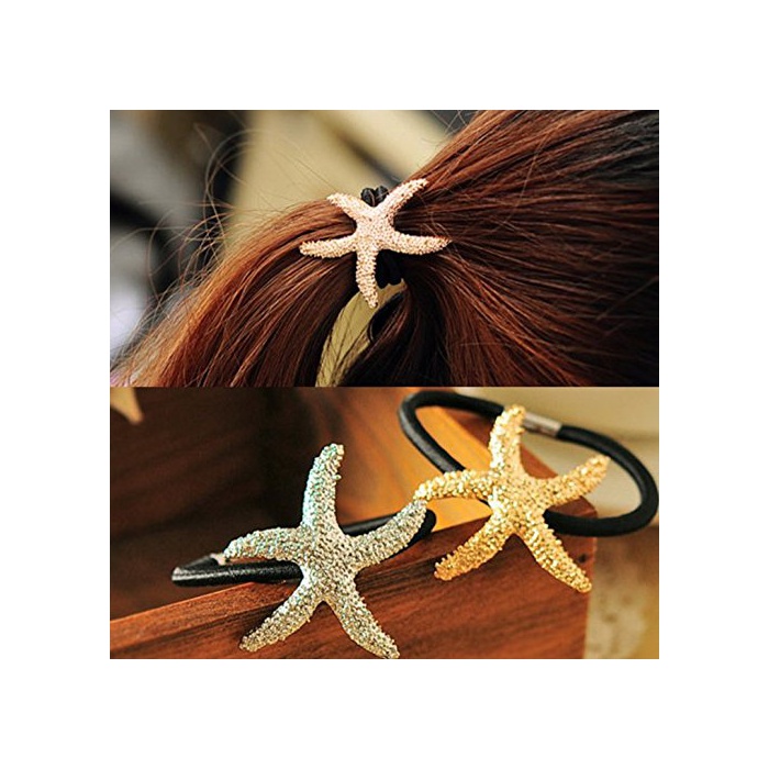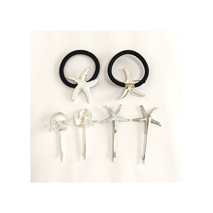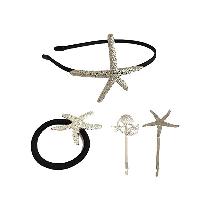 Ricce 스타 피쉬 불가사리 헤어 악세사리 4점 세트 골드 실버 들키지《다》 카츄샤 헤어 핀 헤어 고무 해성 머리장식 발## (들키지《다셋토》 실버)