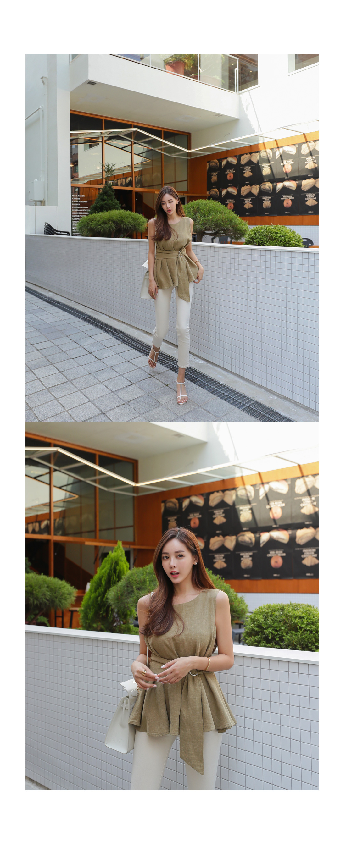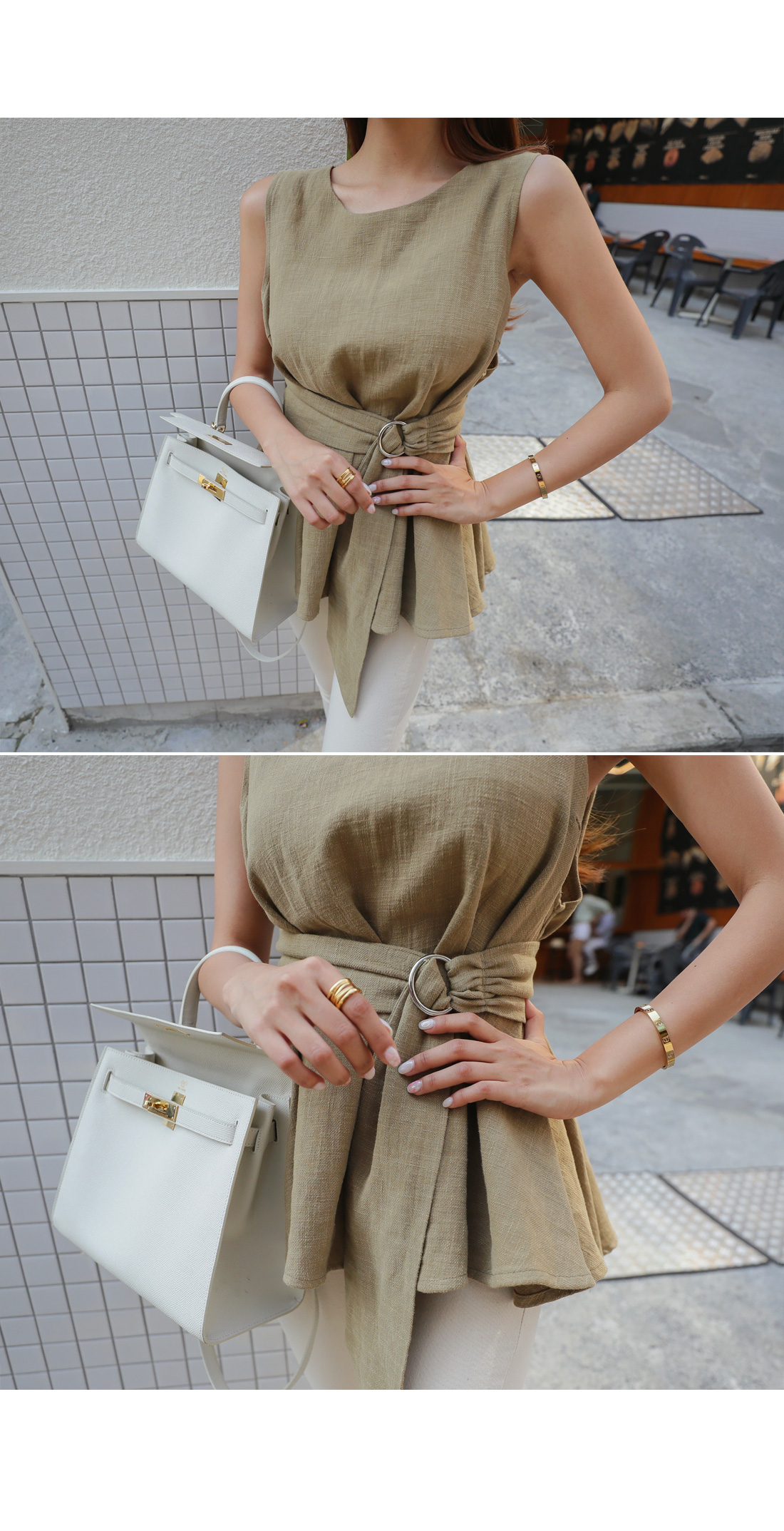MD COMMENT 지금부터 S/S시즌 시원하게 즐기기 좋은 나시 블라우스 소개할게요같은 소재의 벨트가 SET 구성으로허리 라인을 한번 잡아주면 날씬하게 착용가능해요^^전체적으로 여유있는 핏과 힙을 살짝 가려주는 기장감으로 부담없이 편안하게 즐길 수 있어요라운드 네크라인을 둘러 뒷부분에 콩단추로클로징을 도와드려 입고 벗기 편안하구요린넨 소재감으로 지금부터 S/S시즌 시원하게 즐기기 좋으며깔끔한 디자인에 베이직한 컬러감으로 데일리룩이나 데이트룩, 오피스룩 등 다양한 자리에매치가 가능하여 활용도 높은 아이템으로 추천할게요!비침걱정없는 소재감으로 5가지로 준비해드릴게요^^COLOR/SIZE 카키,블루,핑크,베이지,아이보리FREEMODEL FITTING 카키/FREE