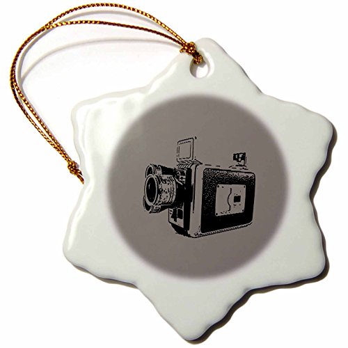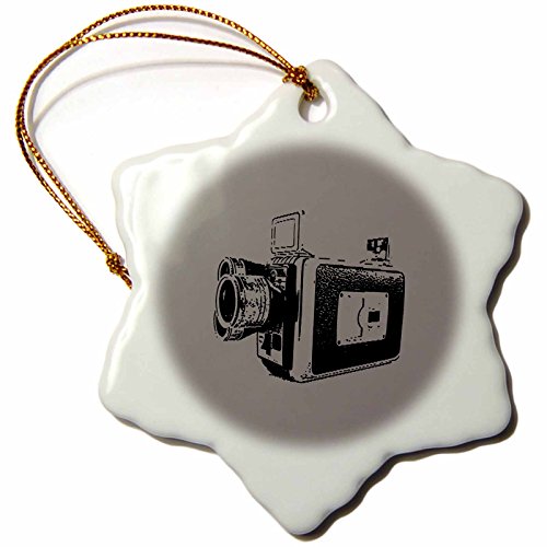 3dRose LLC Picture of A Vintage Super 8 Video Camera on Grey Background 3-Inch Snowflake Porcelain Ornament