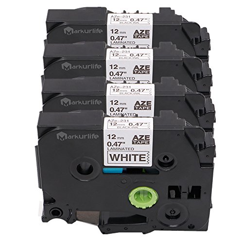 4 pack TZe-231, black on white; width: 1/2 inch (12mm), length: 26.2 feet (8m)