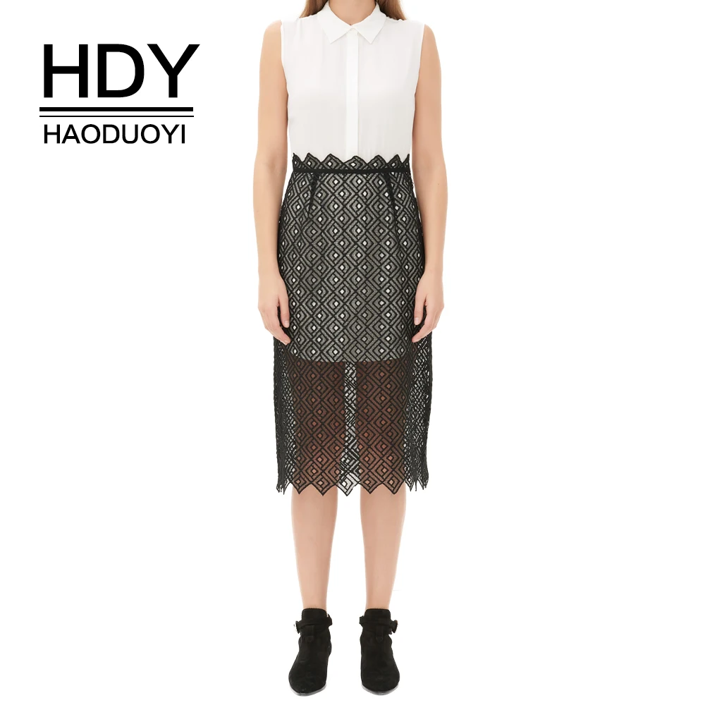 HDY Haoduoyi Summer Euramerican Fashion Dress Chiffon Lace Split Sleeveless Semi-sheer Vestidos Streetwear Casual Hollow Dress | |||||||||||||||||||||||||||||||||||||||