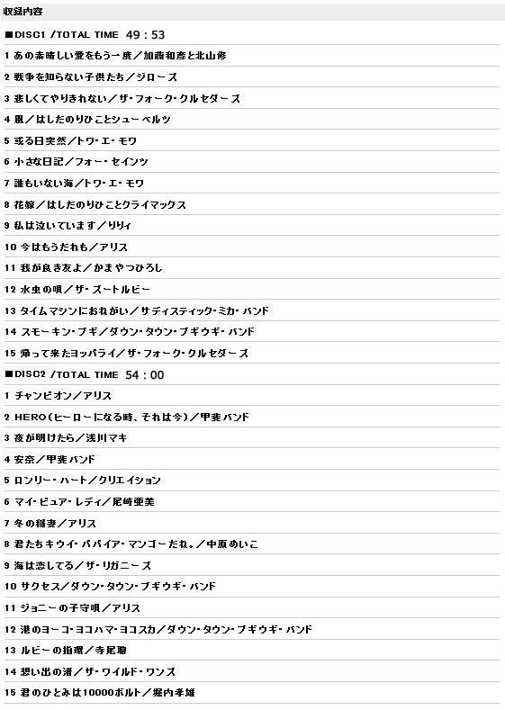 想い出に残るフォーク&ニューミュージックの数々を収録した2枚組の決定盤。