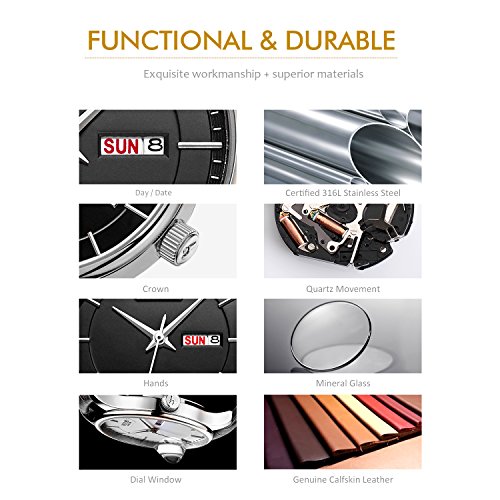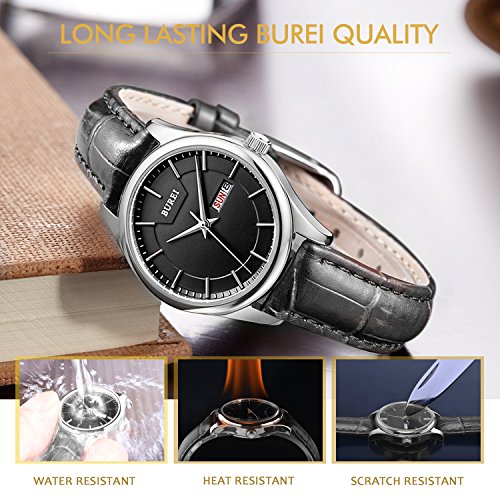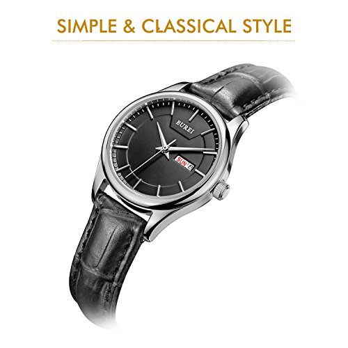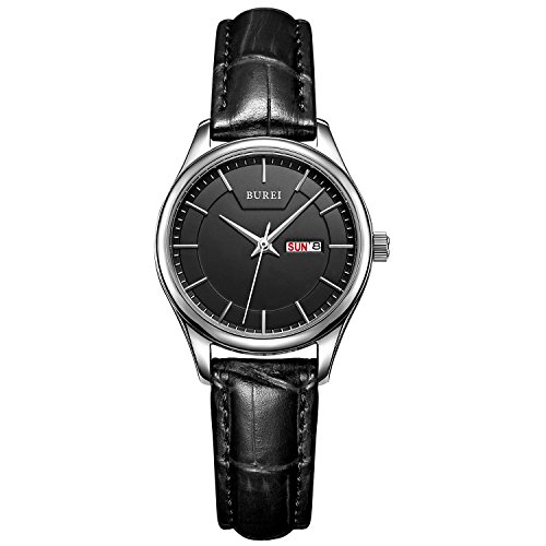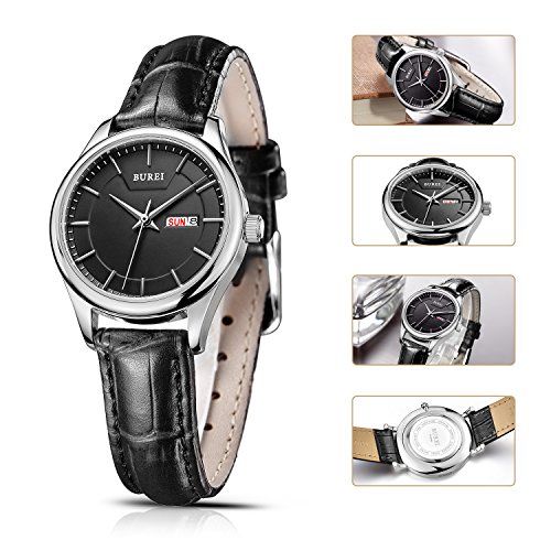 -. Title : BUREI Women's Wrist Watches with Day Date Display Black Leather Strap
