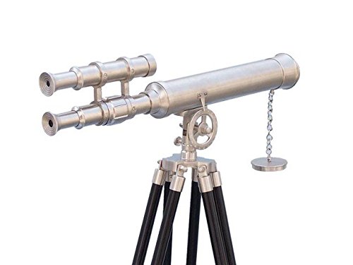 Studio : Handcrafted Decor Publisher : Handcrafted Decor Binding : Office Product Product Description The Hampton Nautical Brushed Nickel Griffith Astro Telescope 50 with view finder is a beautiful brushed nickel refractor telescope mounted on a wooden tripod This telescope is a fully functioning nautical masterpiece that can be given as a gift for any occasion or placed in your home office or boat Both scopes are brushed nickel with a 12x magnification Focusing is accomplished by adjusting the eyepiece ring on the telescope tube This brushed nickel nautical gem adds a shine to any room it enters A removable cap connected by a chain protects the objective lens The wooden tripod stand features smooth polished round legs each with brushed nickel fittings and a screw release to let you adjust the height A brushed nickel chain holds the three wooden legs together so the telescope can maintain its positionFeatures. 12X Magnification. Brushed Nickel telescope with woodcased body. Glass optics for a clear view not plastic lenses. Fully functional telescope focuses and magnifies. Sturdy wooden tripod supports telescope when viewingSpecifications. Dimensions 50 H x 15 W x 18 L. Weight 9 0
