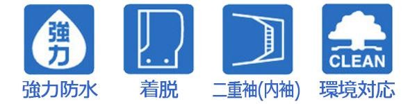 | フードは取り外しが可能です。二重構造の袖口で、雨水の侵入をしっかりと防ぎます。燃焼の際、有毒なガスを発生しない地球環境にやさしい低公害素材を使用しています。 |