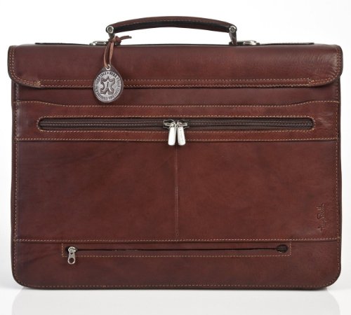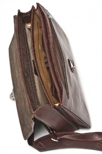 -. Feature : Made from Full Grain Italian Cow Hide Leather. Vegetable tanned for greater durability, texture and feel. Leather is soft to the touch with a matted grain finish. / Flap-Over. Holds up to 17" Laptop. Front compartment includes three(3) business and credit card holders, two(2) pen holders, two(2) stationary organizational pouches, and two(2) large organizational pouches. Rear compartment includes mesh zippered compartment / Front exterior features one zippered compartment and an open compartment underneath flap. Rear features an open compartment and double zippered pocket. Top easy to grasp padded handle. / Features lockable T-clasp closure with key inside. Comes with 1" thick detachable and adjustable padded shoulder strap. Comes in signature Tony Perotti lint bag for storage. Interior pigskin lining. / Dimensions: Exterior: 16.5"(L) x 12"(H) x 5"(W). Interior: 16"(L) x 11.5"(H) x 2.25"(W)- each compartment. Available Colors: Black, Brown, Cognac, Honey. Comes with Limited Lifetime Warranty