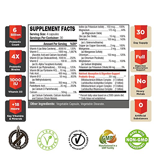 -. Title : VINTAGE BASE - 2-in-1 Multivitamin Supplement with Probiotics - Maximal Absorption Formula - Metabolic Efficiency, Immune System Strength, Digestion & Intestinal Flora - 120 Natural Veggie Pills
