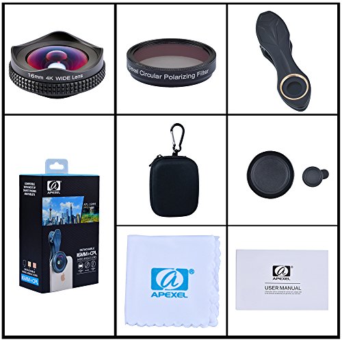 Feature: Polarizers filter lens can greatly enhance outdoor images by increasing contrast and color saturation,eliminating reflections from glass and other non-metallic surfaces,and darkening blue sky. A polarizer has two rings.The bottom ring screws on to the front thread of a lens,and the top ring is rotatable. As the top ring rotates,one can see the effect through the phone screen. Wide lens will extend your pictures edges on all sides to get you the perfect shot of an overall view. It is useful in architectural,cityscape, interior and landscape photography.You can also enjoy taking selfies,portraits,large group photos,concerts,football match,road trips,hiking, vacations,panoramas and vistas. Specification: Sensor size:1/3” EFL:4.1MM FOV:112 Distortion:?4.2% Magnification:0.6X Relative illumination:100% Lens construction:4Groups, 4Element TTL:17.3 mm Resolution:Center ? 550 lp/mm 0.7 Field ? 450 lp/mm Box contain: 1 x 16mm wide angle lens 1 x CPL Len 2 x Lens Cap 1 x Universal clip 1 x Cloth bag 1 x User manual