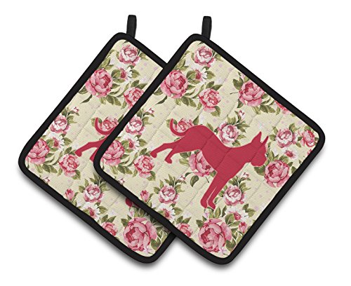 Caroline's Treasures Boxer Shabby Chic Yellow Roses Pair of Pot Holders BB1109-RS-YW-PTHD, 7.5HX7.5W, Multicolor